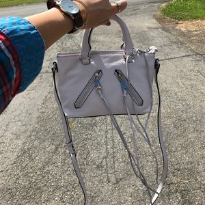 Brand new Rebecca Minkoff micro moto satchel in lovely pale lilac. Pebbled leather with silver hardware and logo plate on back. Adjustable shoulder strap. Spacious compartment with zipper closure and two front asymmetrical zipper pockets (as shown). Brand new, tags still on. Not looking to trade.