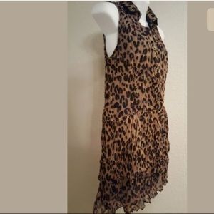 Excellent Condition CECICO Animal Print Sleeveless Front Button V-Neck Tier Ruffle Short Dress S