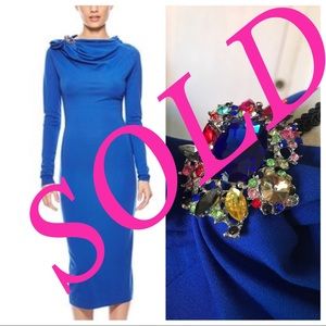 Gorgeous Gracia neoprene midi dress with brooch. Boat/cowl neck. Brooch is detachable. Easy to take this dress from day to night. Sophistication personified. Very stretchy. NWOT