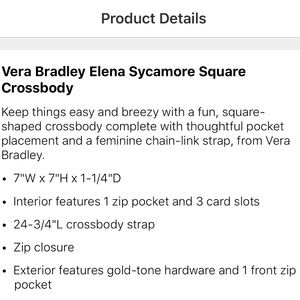 Dimensions: 7" w x 7" h x 1 ¼" d with 24 ¾" strap drop