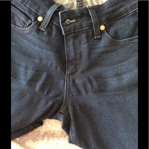 Paige jeans verdugo ultra skinny in very good condition but they do have some stretch puckers in the front and the seat area. Please see photos. This does not show when you have them on but I want to make you aware of it. Dark blue in color. Ladies size 26. Rise is 7.5" and 30" inseam. 28" waist. But the size is 26. Super stretchy.
