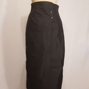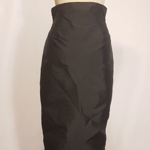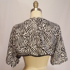 Size 4/6 designer two piece. zebra print crop top. Poly crepe, skirt black taffeta high waist slit in front snap closures.