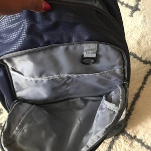 - Water Resistant Finish - Soft-Lined Laptop Sleeve - Water-repellent front valuables pocket - Heat Gear Shoulder Straps - Abrasion Resistant Bottom Panel - 2 side water bottle pockets - Large gusseted front Laundry pocket