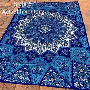 Select your favorite style! This large NWT Bohemian beach blanket doubles as a bedspread, swim suit coverup shawl, Hippie tapestry wall hanging, or can be used for a variety of Boho home decor. Machine washable poly blend is light, thin, and easy to pack with your bikini for your next vacation. Sand easily slips off. Dries quickly. The colors are absolutely brilliant! Message me for assistance in ordering more than one. Measures 5ft x 7ft. We ship fast and include a FREE NWT gift! (O)