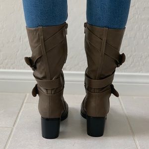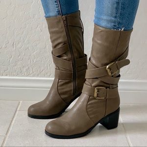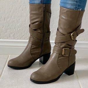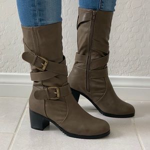 NIB Kitten Chunky Heel Buckle Wrap Mid Calf Boots