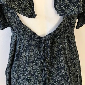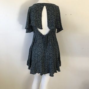 Kimchi Blue Lisa Cape-Sleeve Mini Dress- Teal M. Romantic deep-V floral print mini dress with floaty cape-sleeves. Tie waist. Hidden side zipper. Super short mini dress. Excellent condition
