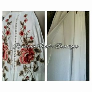 Floral embroidered maxi dress featuring mini skirt underneath.
