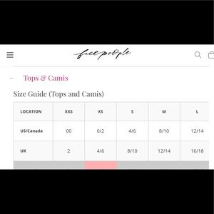 @diana_aurora hi, Free People sizing chart added above. Thanks!
