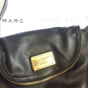 Sold in Bundle....Authentic Marc by Marc Jacobs Black leather with gold accents crossbody purse Preowned in excellent condition very well taken care of only a couple little leather ware spots from use shown in last photo