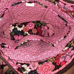 Vera Bradley shoulder bag in Mod Floral Pink pattern. There is a tiny hole pictured above.