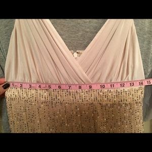 This beautiful party dress is absolute perfection! It measures approximately 41" from shoulder to hem. It's perfect for any sorority formal, NYE, or just a night out! **First photo is the same style, but different color shown on the mannequin**
