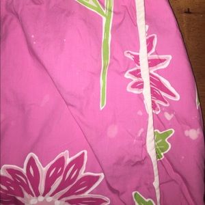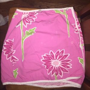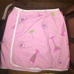 Adorable reversible skirt for pool, beach golf or party. 100% cotton. Pretty deep pink floral on one side and sassy martini on other. Bleach stains as shown n pic. With the white trim around flowers hardly noticeable.