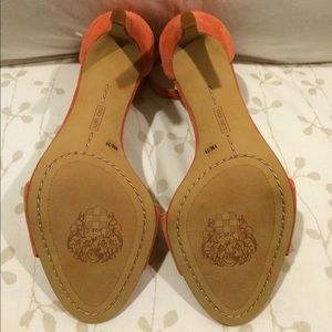 New and never used Vince Camuto suede heels with adjustable ankle straps and in a beautiful peach color. It has a stiletto heel at 3.25 inches