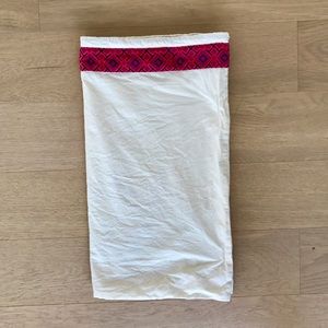 TORY BURCH Marion style tote in Masaai Red leather. Magnetic snap closure. 13" height and 16" length with 5" depth. Woven leather shoulder strap with 9" drop. Features interior zipper pocket and two open pockets. MSRP $495.