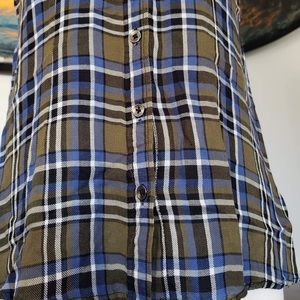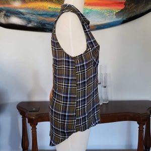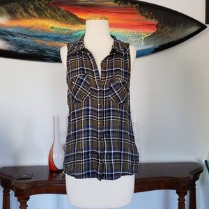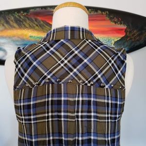 Rock & Republic Plaid Sleeveless buttondown very cute top, has studs across the back,hi low top w/ 2 breast pockets size small and in perfect condition.