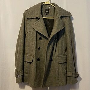 Love Express beautiful coat.Size medium.Color gray.Shoulder to bottom 28" long,breast laying flat 19".In a good condition.missing small button inside and button started to loose,other than that In a good condition.Make an offer.
