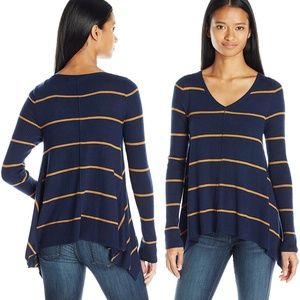 1 LEFT⚡ Navy & Gold Striped Sharkbite Sweater NWT