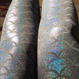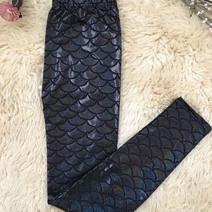 Mermaid Leggings set of three. black iridescent, sparkle mermaid green, and sparkle silver. *Stretchy tight fit *Hand washing the leggings for long lasting sparkle. Available in XS, small or medium. Message me Selection of Size.