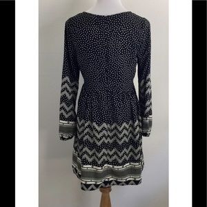Francesca's Collection Birdcage Dress Polka Dot Chevron Blue Cream Pockets Small