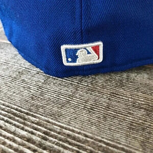 Likes new, worn twice. Embroidered logo. Size 7.5. Black rim with silver stitch. Side American League emblem.