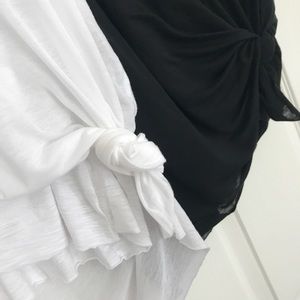 All my workout girls, I am loving this on! Very comfortable breathable jersey fabric, double layered so you can wear normal or tied in a side knot. One layer has a solid look while the other has a burnout look. Raw edge finish with side slits.