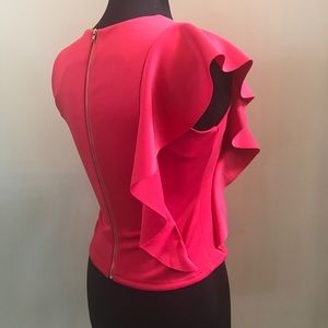 Get this super cute detailed top in a beautiful pinkish red color! This top is finished off by a zipper back! This top is like new! It has only been tried on!