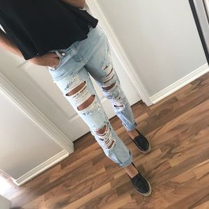 The most perfect pair of Girlfriend jeans yet! Such a cute cute fit. Features a fixed jean fabric, not overly loose, straight legged with just the right about of looseness. Functional pockets, zipper, 1 button.