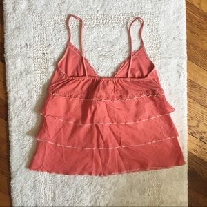 Abercrombie & Fitch Ruffled Top in a Salmon Pink color. •Adjustable tie front detail •23" Length