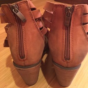 NWOT Free People 'Hybrid' Strappy Leather Bootie. A distressed stacked heel lifts a cage-inspired bootie with a strappy shaft for an on-trend cutout effect.