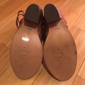 Leather upper and lining/leather and synthetic sole. Brand new without shoebox. Size 38 can fit a women's size 7.5/8. Color Terracotta. No trades. Price is firm.