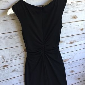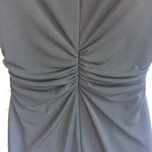 From the king of elegance, David Meister, comes this lovely black dress. It is just perfect for any occasion. The most flattering design I have seen with cinched sides and backside. Elegance comes from the lovely draped neckline. Size 4. Bust-16", length-36". Very fitted with some slight stretch. Thank you for looking!