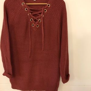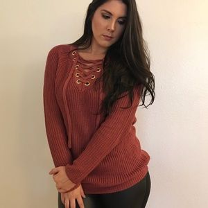 •LAST ONE• Dark Mauve Lace Up Sweater
