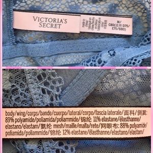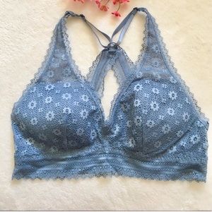 SIZE M Victoria's Secret Bralette Collection. Lightly lined Racerback Bralette. The color is faded denim with adjustable straps. Soft lace with comfort worn nicely under a loose baggy tee. Or, that special top that needs a little extra coverage underneath. Very feminine pretty color. Check size chart for fit. BNWT Please check out the rest of my VS/PINK listings.