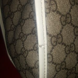Authentic Gucci Shoulder Bag, cream, pics reflect the condition of the bag, there are 2 cracks in the patent leather trim. 1 of them is located at the front left & the other is at the top left rear trim. There is crinkles in the patent leather & the straps has some discoloration but nothing major to diminish the overall beauty of the bag. It has been worn, but still in good condition. Will come from a smoke-free home and will include dustbag. Purchased online at gucci.com. Cross-Listed on Ⓜ️erc