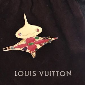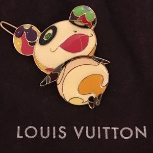 These rare and hard to find Barettes are the collaboration between Takashi Murakami and Marc Jacobs. Featuring 3 hair pins with the Flower Hat Man, LV Panda, and the Onion Head design.