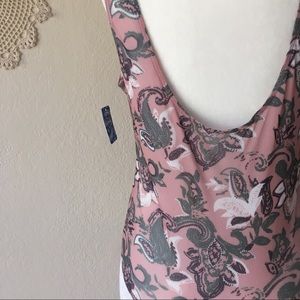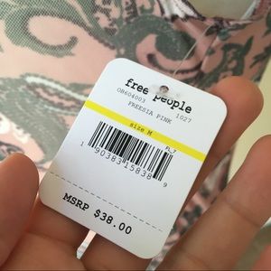 Cute and comfortable sheer mesh floral paisley bodysuit from Intimately Free People. Low scoop back. Freesia Pink. Pullover style. NWT. Size Medium. Measurements are taken with the item lying flat and are as follows: