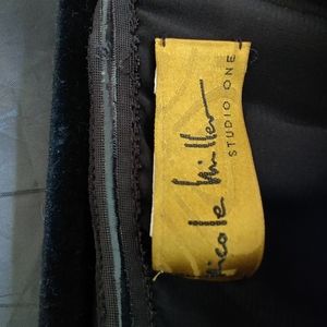 NICOLE MILLER Black Brocade Strapless Dress.