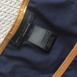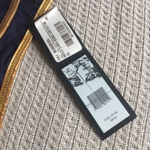Euro bikini bottom in Haley Stripe. Navy base with geometric print and gold trim. NWT