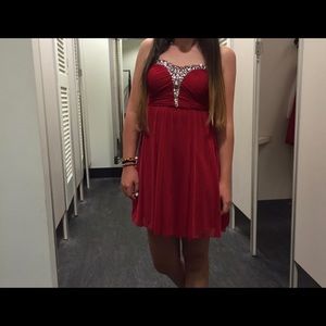 red strapless homecoming dress, only worn once!!!! diamonds on the front, cut out in the back