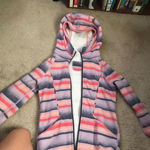 2 black leggings(one with colorful waistband and other with cross crossed fabric at the bottom, 1 capri length gray leggings (mesh at bottom), 2 long sleeve fly tech shirts(one gray one pink and orange) , 1 short sleeve fly tech shirt, 1 fall thick striped hoodie. sweatshirt, shortsleeved, and the pink fly-tech are size 10. gray fly-tech is size 8. capris and colorful waist band pants are size 10. cross-sewn leggings are a size 8. EVERYTHING: gently used, washed. price is negotiable as well.
