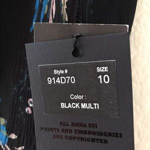 NWT ANNA SUI Bird Print Dress Lace Silk Chiffon Black Anthropologie Size US 10