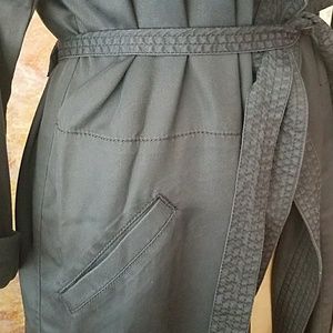 New, never worn. Cinched waist with tie detail and pockets at sides.