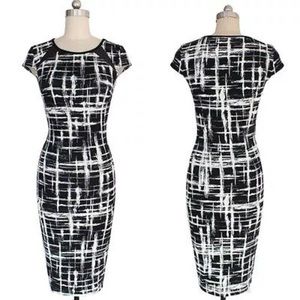 Never worn beautiful black and white bodycon dress. Mid calf dress. Perfect for business or a night out. Very slinky and light