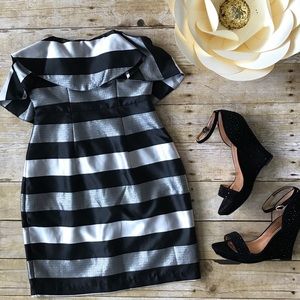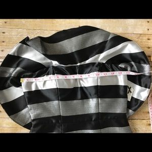 Nwt!! This fun flirty dress is stunning. đ⢠High waist⢠polyester/ lurrex linning/⢠shimmery gray\silver stripes⢠top has rubber linning for it to stay up / ⢠breast padding⢠great party dress ⢠waist measurement 12 1/2 in. when layed flatâ˘no trades â˘