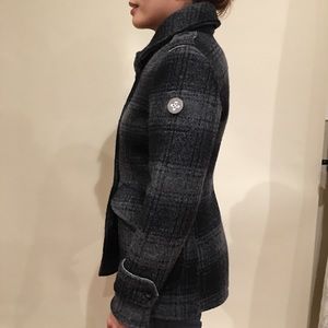 Gorgeous flannel 2 tone pattern wool jacket, closed lapel collar, double breasted, button closing, multipockets, long sleeves, unlined, outerwear. Made in Italy 🇮🇹