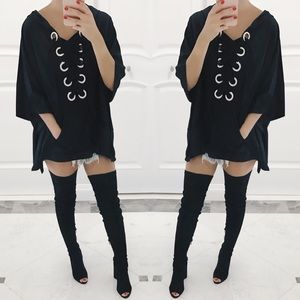 ❗️ONE left❗️Vienna Lace Up Short Sleeve Hoodie