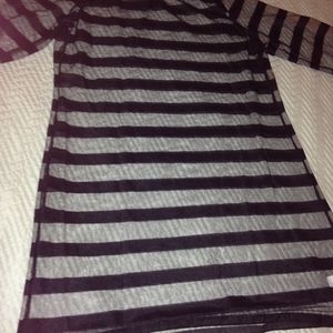 The model in the first two photos is wearing a black slip under the lace striped sheer top. The third photo shows accurate item being sold without a slip. This item can be used over a slip for a dress or over a cami for a tunic top. If you would like measurements please feel free to ask.