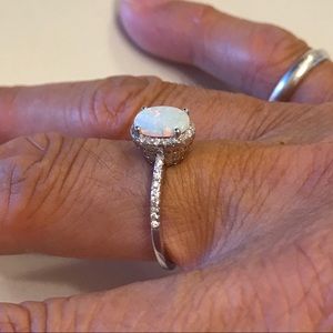 Sterling Silver Oval White Lab Opal with CZ Ring, Wedding Rings,Engagement Ring, 925 Stamped