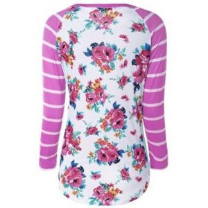 NEW! LONG SLEEVE BASEBALL STYLE FLORAL TOP WITH STRIPES LONG SLEEVE ! (SIZE UP 2 SIZES FOR A LOOSER FIT.)