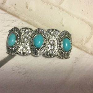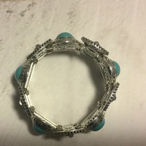 This is a beautiful boho style classical synthetic turquoise stretch bracelet. More detailed info. In pics. Buy with confidence I am a top rated seller, mentor and fast shipper. Don't forget to bundle and save. Thank you.